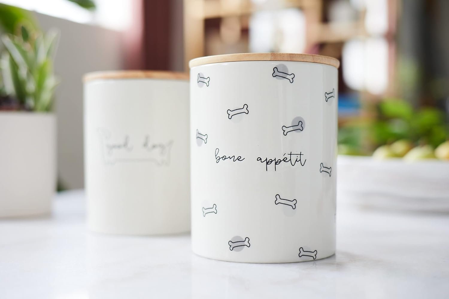• Generous 32 oz capacity: Easy-access, space-saving solution for all your bone appetit jar and snack storage needs.
